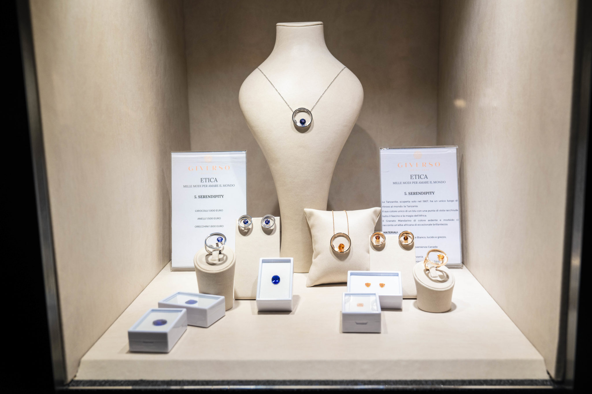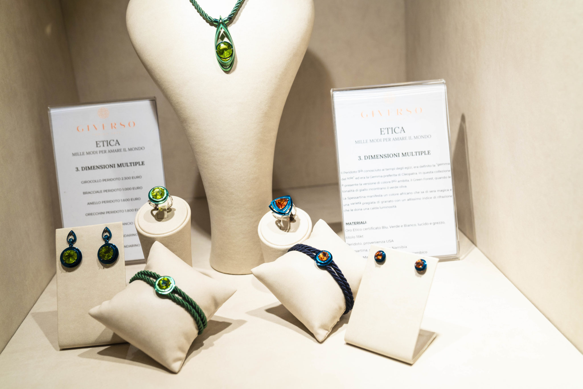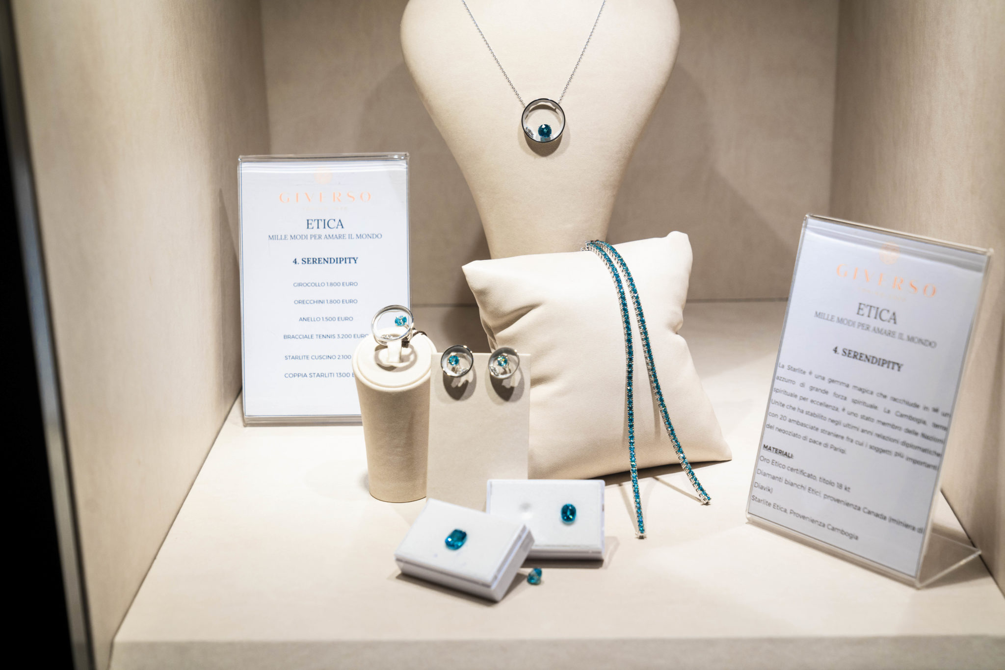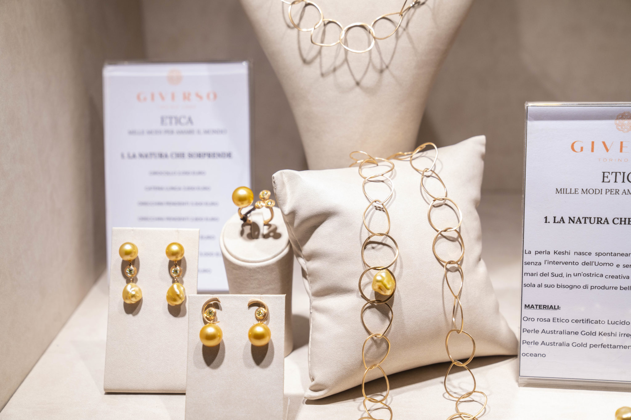 GIVERSO ha sviluppato un percorso concettuale di 12 collezioni di gioielli unici, tutti disegnati e realizzati a mano con l’intento di superare i canoni della gioielleria classica ed introdurre un nuovo design. Tutte le creazioni sono realizzate in oro etico certificato e gemme preziose conflict free in modo da assicurare il massimo rispetto dell’Ambiente e dei Diritti Umani, rappresentando una vera e propria rivoluzione nel nostro settore.